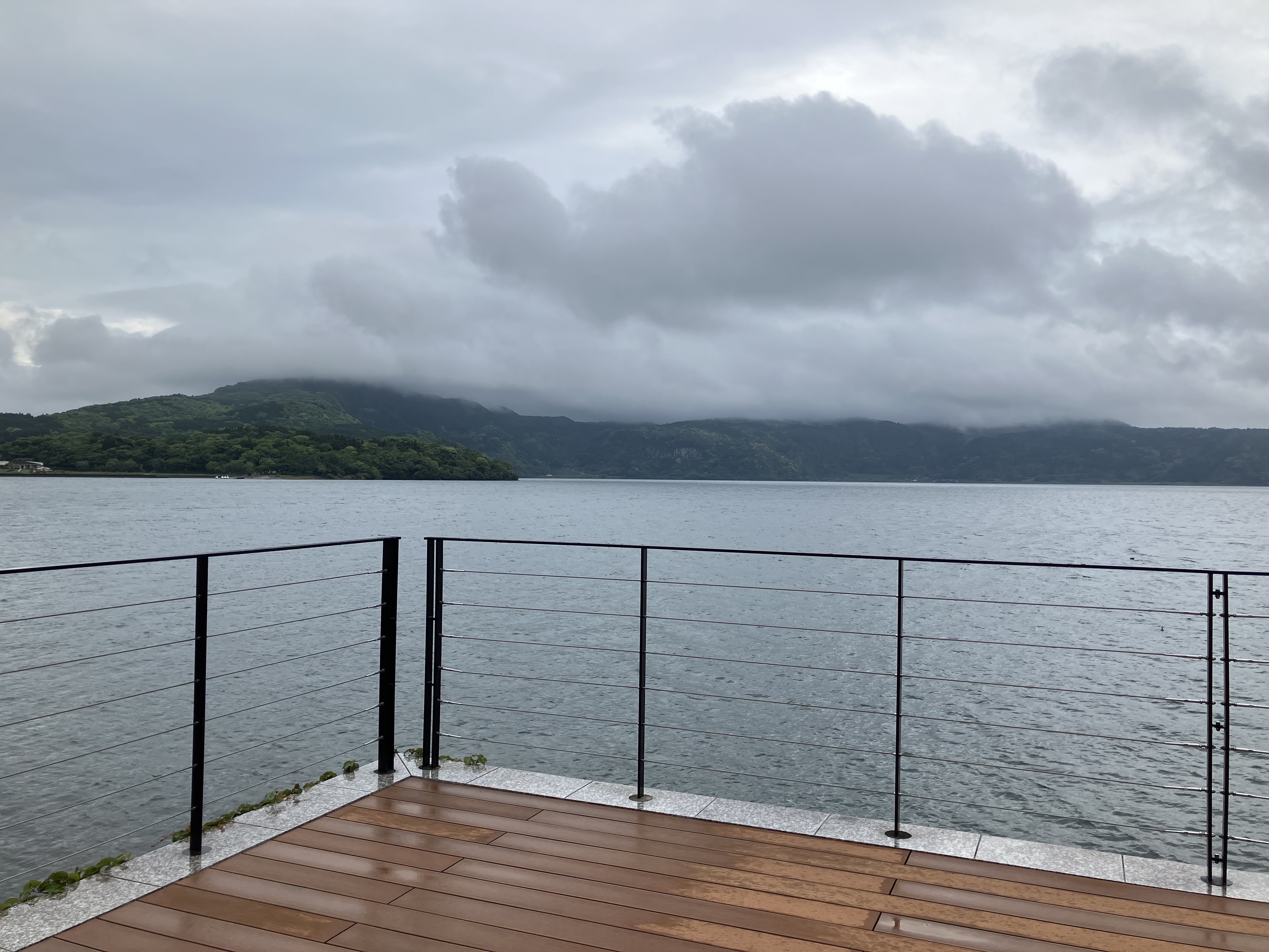最後、ゆったりcafeで池田湖畔の景色を見ながら