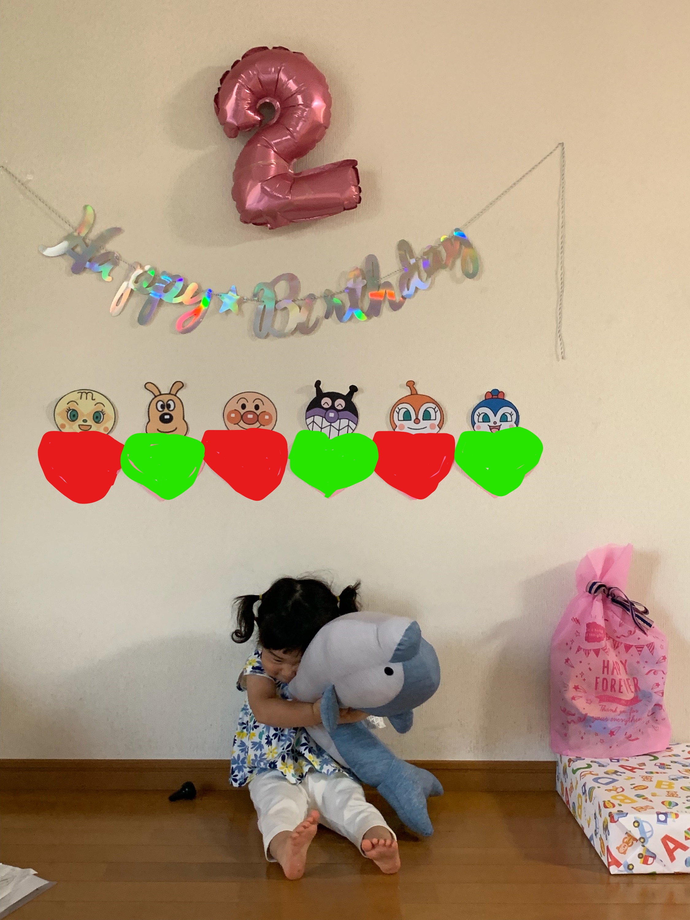 たくさんのプレゼントと、アンパンマンのケーキ